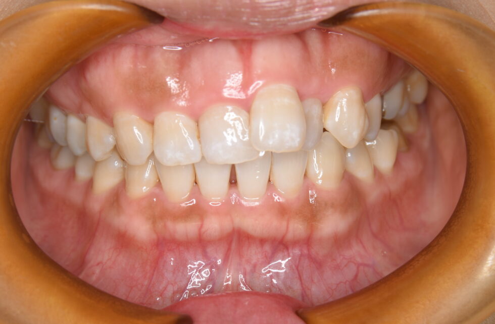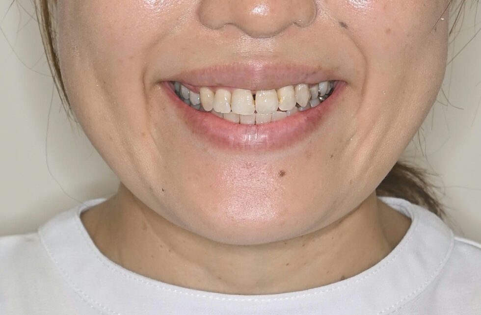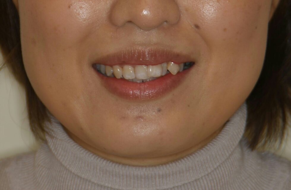 初診時年齢35歳の女性 前歯で咬めないことと八重歯を主訴にご来院いただいた。