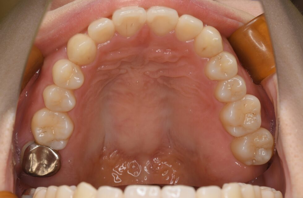 7~8年前に左上の親知らずが生えてきたことにより、左上の前歯が引っ込み、噛み合わせが悪くなりました。咬み合わせが悪いことから、固く閉まった水筒の蓋を開けるのに力が入らないことが度々ありました。また、見た目の問題から歯を見せて笑ったり写真を撮ることに抵抗があり、治療を受けることにしました。