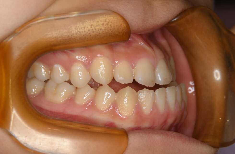 傾斜があるため上顎左右側第二小臼歯を抜歯していただいた。術前矯正2年6か月間、術後
