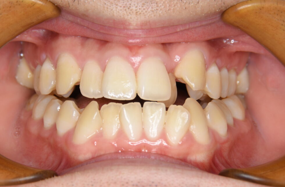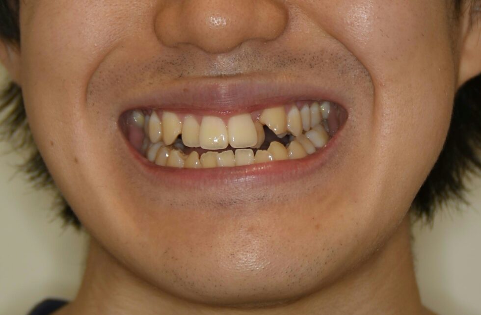 初診時年齢18歳の男性 前歯部反対咬合と開咬を主訴に以前通院していた他県の矯正医より紹介で来院された。