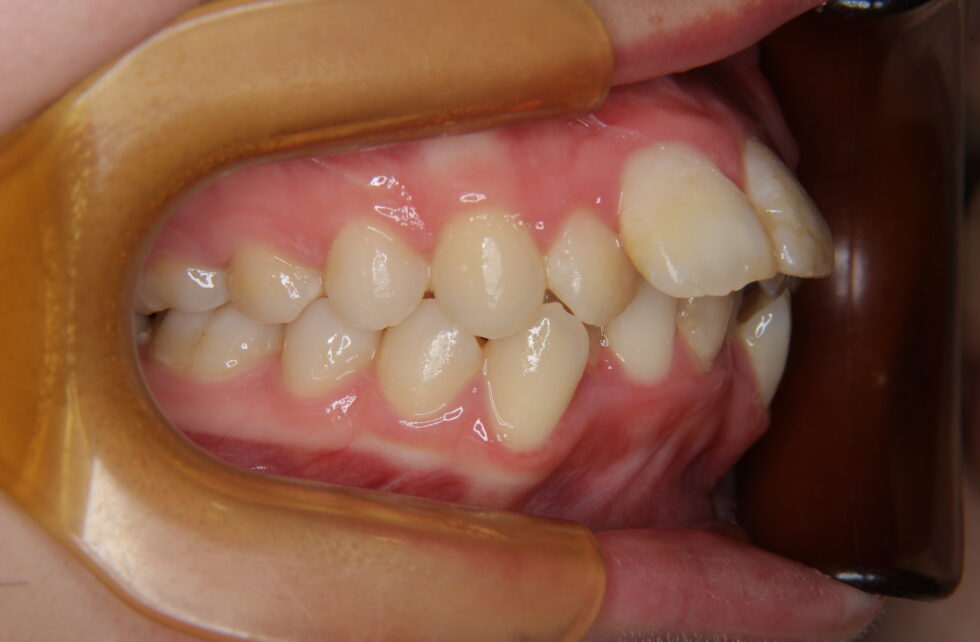 初診時年齢18歳の女性。叢生を伴う上顎前突のケース。