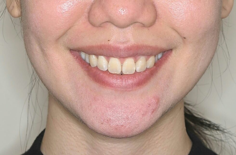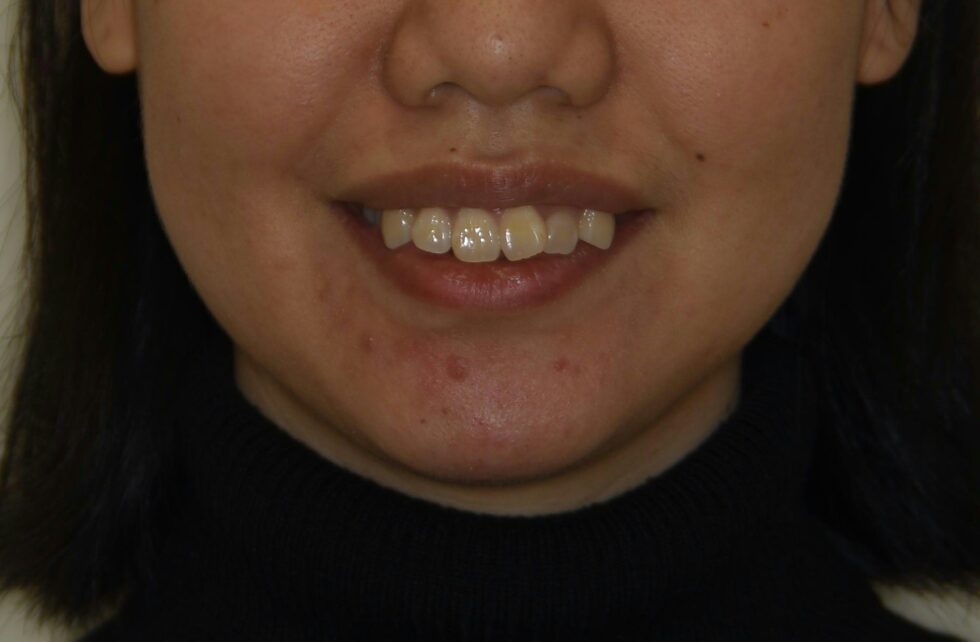 前歯の叢生を改善し、前歯の後退により口元の形態も整えることが出来ました。