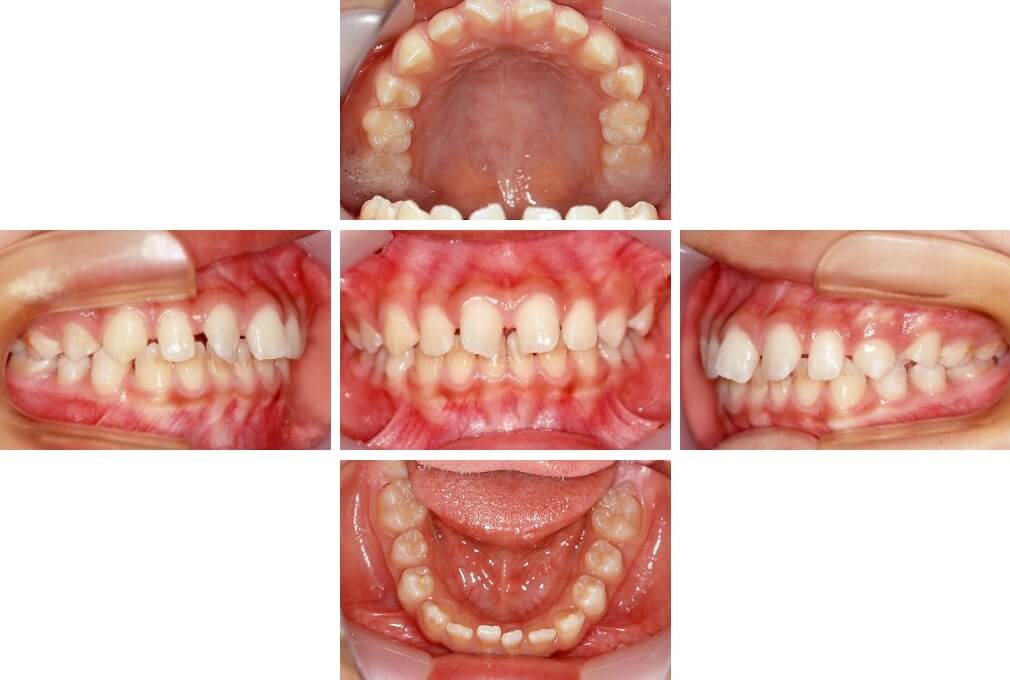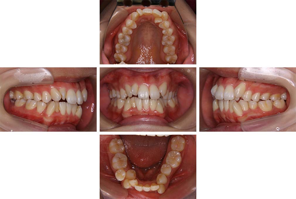 上顎左右側小臼歯3歯、下顎左側第二小臼歯の先天欠損と下顎前歯の叢生を主訴として近隣一般歯科から紹介来院した。